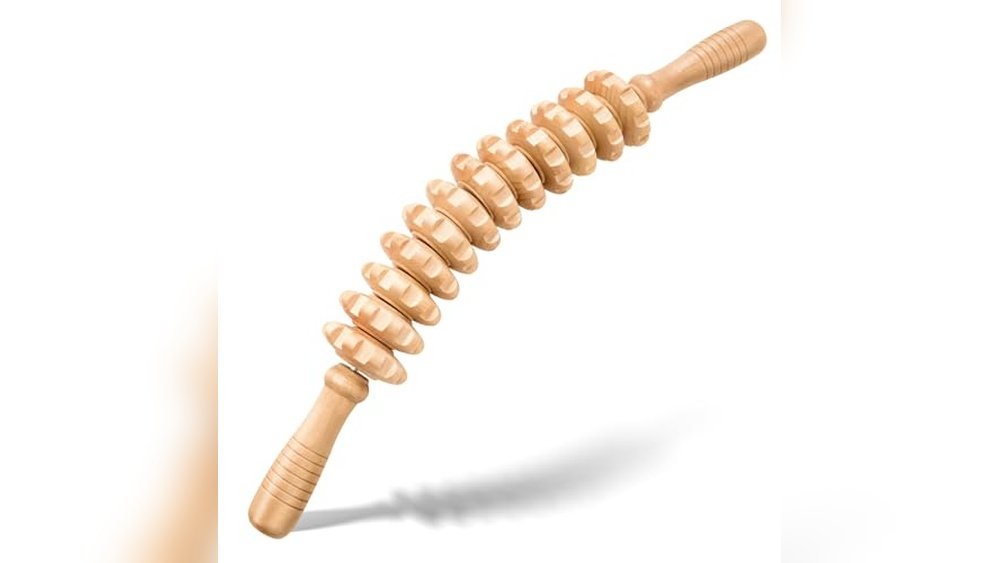 One of the Best Wooden Massage Tools for Cellulite, this roller effectively targets muscle tension while helping to reduce skin dimpling.