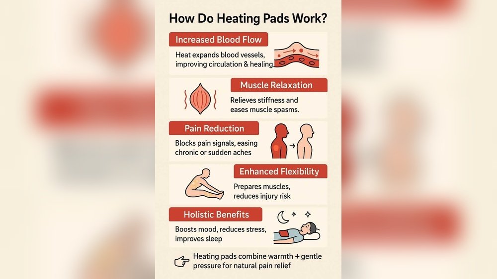 Heating pads are simple devices that give off gentle heat. You can place them on different parts of your body. Here’s how they work: