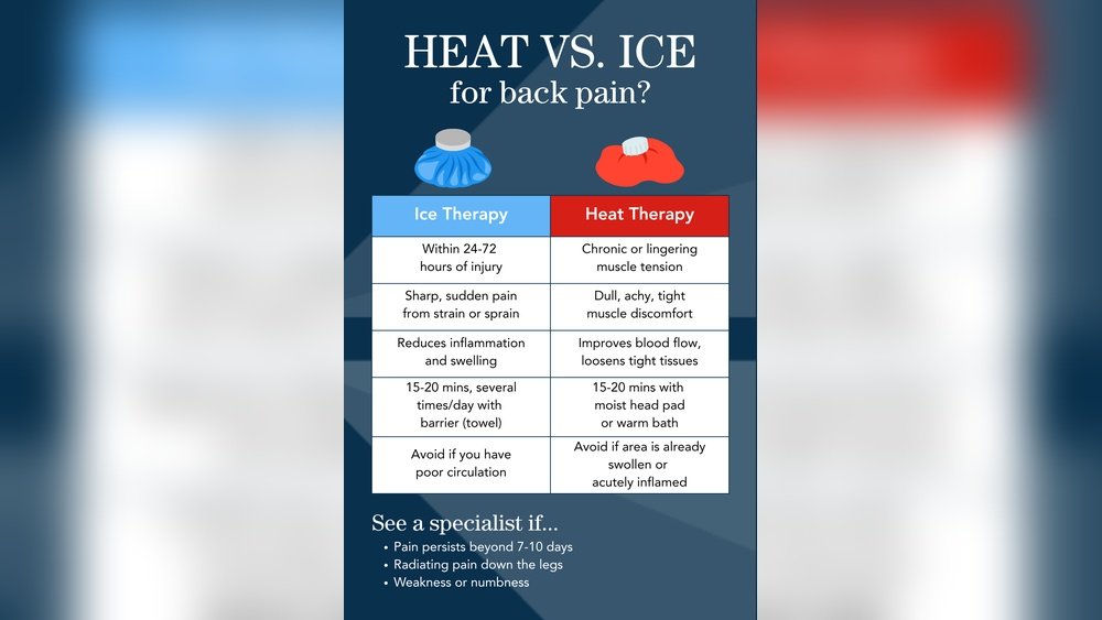 If you have a new injury with swelling, start with ice. For long-term aches and stiffness, try heat. Always use heating pads safely and talk to a healthcare provider if you are unsure.