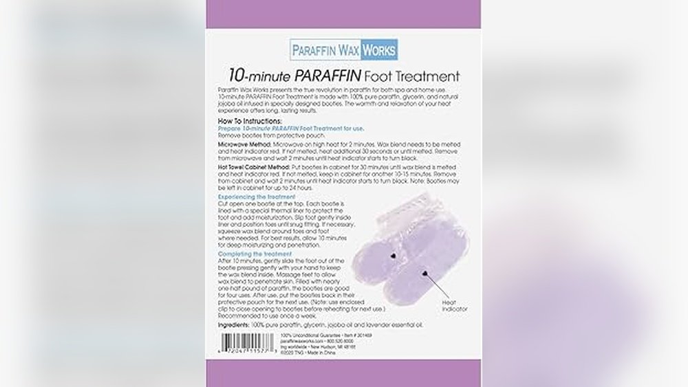 The wax is made from paraffin, a type of soft wax. It holds heat well, making it useful for soothing pain and stiffness. The treatment usually lasts 15 to 30 minutes.